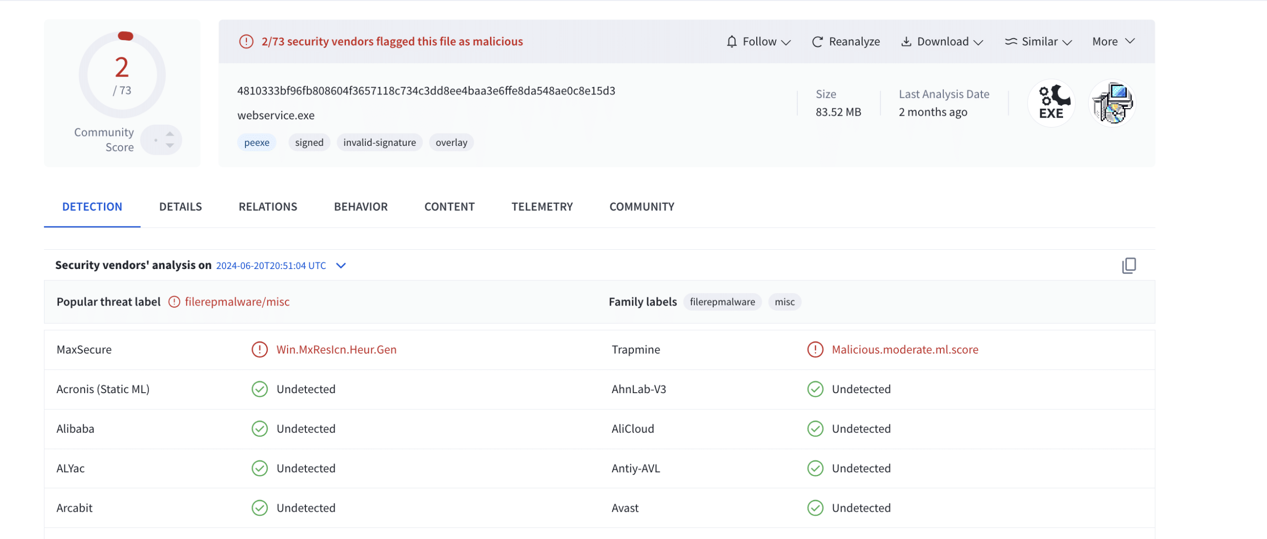 This technique provides some anti-analysis by automated solutions because most solutions will identify the file as a Windows executable (PE). When the file is executed in a sandbox, nothing malicious will happen. To invoke the malicious code, mshta must be used.