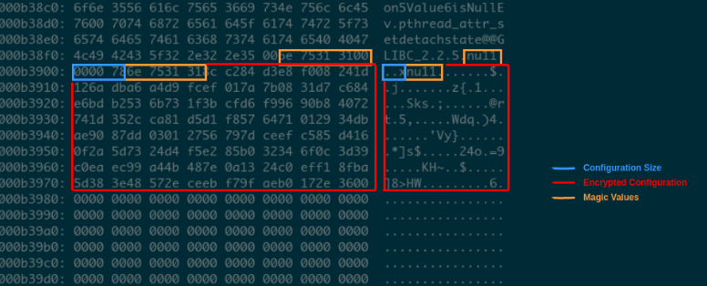 The malware will try to load itself from the disk and parse this blob to then retrieve the static encrypted configuration.