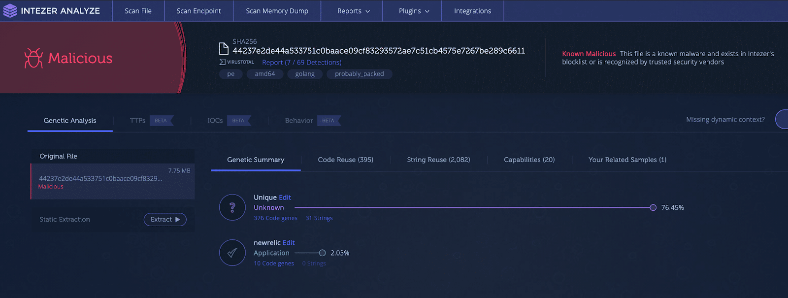 Detect if your Windows machine or server has been compromised by Klingon RAT or any variant that reuses code using the Intezer Analyze Live Endpoint Scanner available via the enterprise edition. Running the scanner will classify all binary code residing in your machine’s memory.