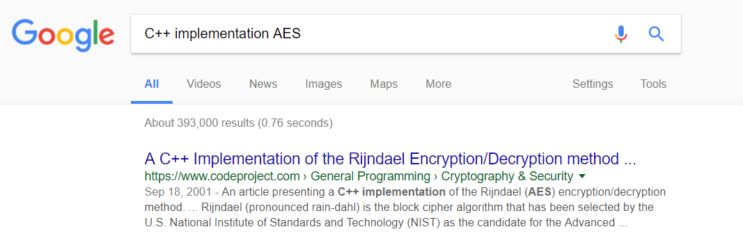 “C++ Implementation AES”.