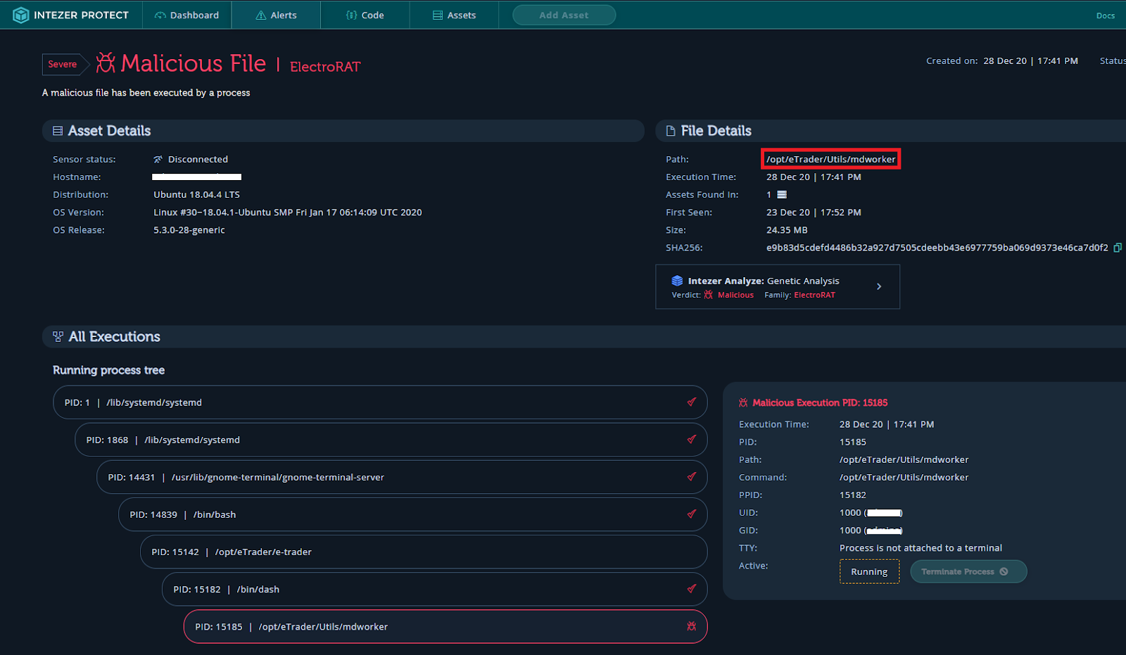 Figure 11: ElectroRAT alert in Intezer Protect