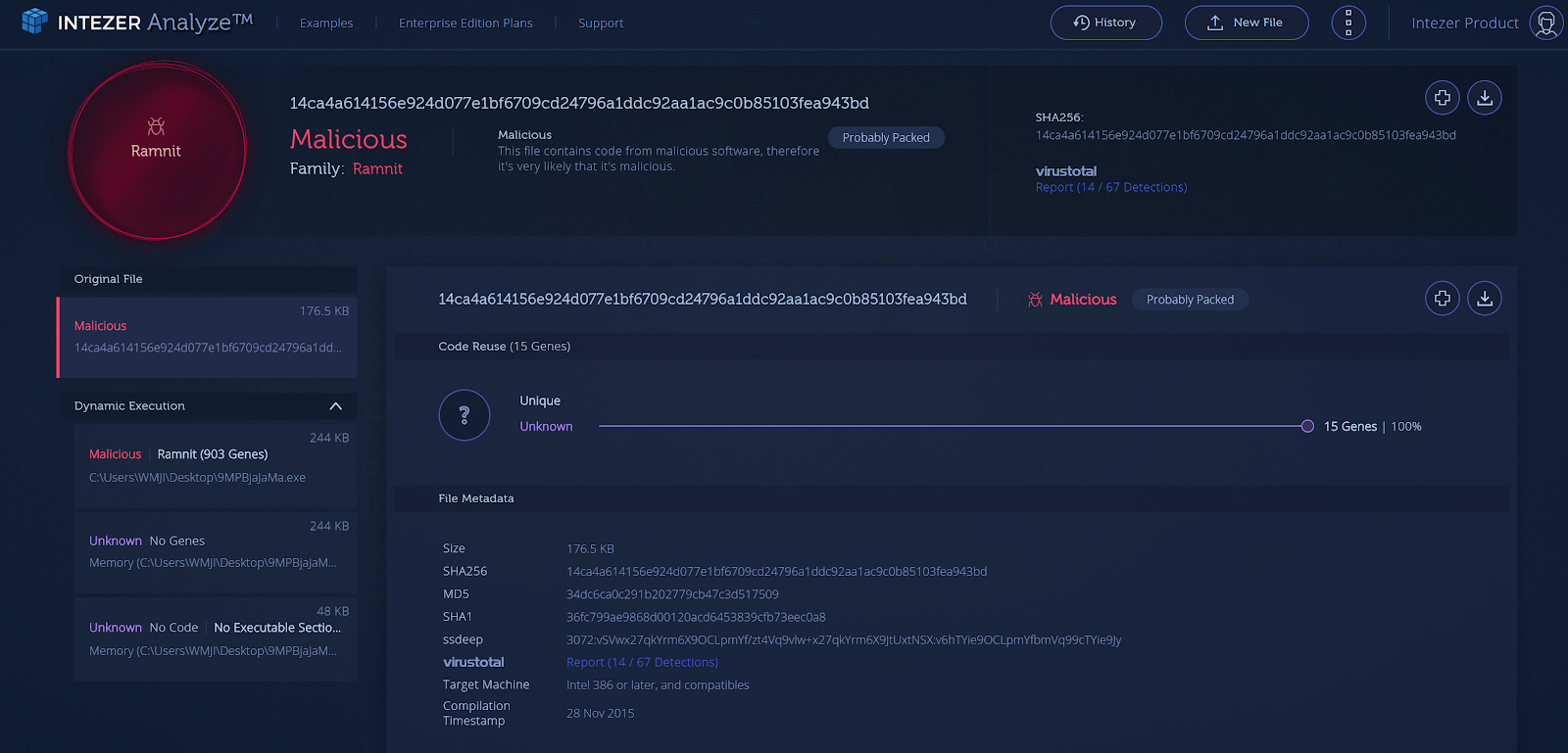 Now, when Intezer Analyze detects code similarities to a certain installer, it will automatically extract the files (recursively, so that no file is missed). Then, it will analyze them using our Code Intelligence™ technology to provide a much deeper analysis of the uploaded file and inspect every piece of code in the extracted files. Other non-executable files, are analyzed using other sources, to deliver a picture of what’s inside the compressed installer file.