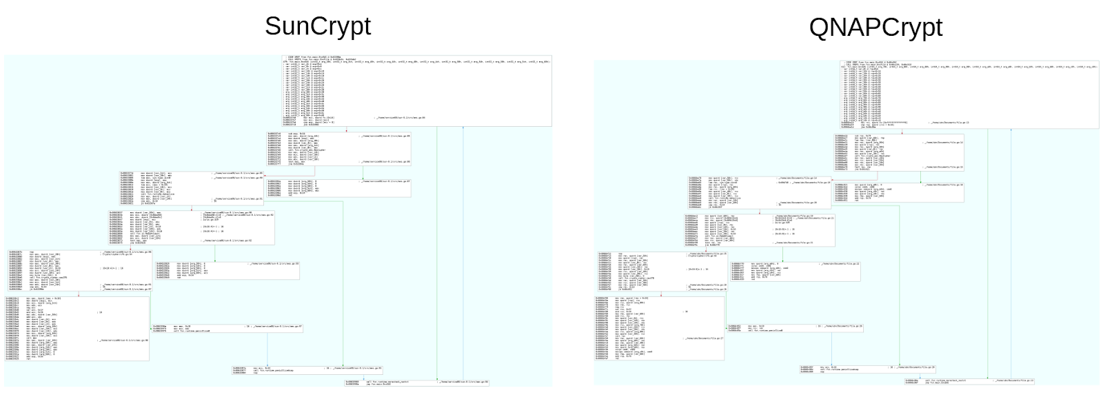 Figure 5: Flow graph comparison between SunCrypt and QNAPCrypt’s “EncEAS” function.Other Similarities