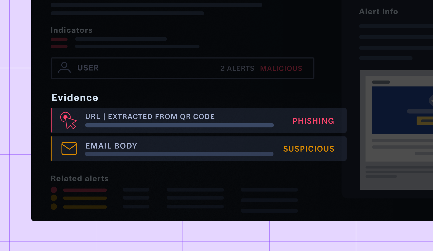 Automatically associates headers, attachments, URLs, email content, and related alerts and context