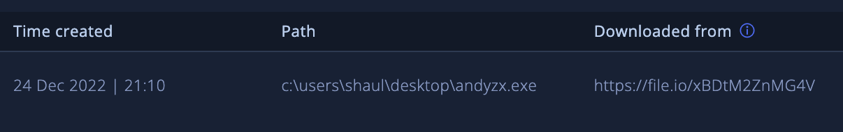 The next step we should take is to look for the downloaded link by clicking the file’s information and in case we were able to detect one, that URL should be blocked.