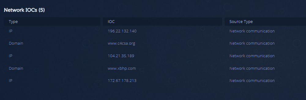 This transform gets the file’s network IoCs. |